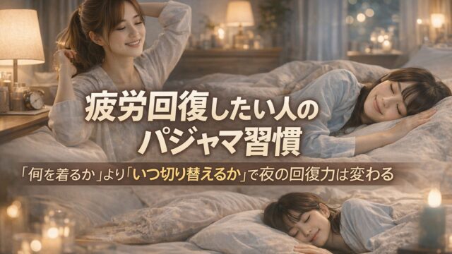 疲労回復したいのに朝が重い人へ。パジャマはただの寝巻きではなく、夜を閉じる合図として使うと扱いやすくなります。帰宅後30分、食事、入浴、スマホ、翌朝準備、寝室、洗濯、寝床の順番まで整理し、疲れをためにくい夜の流れをやさしく解説します。
